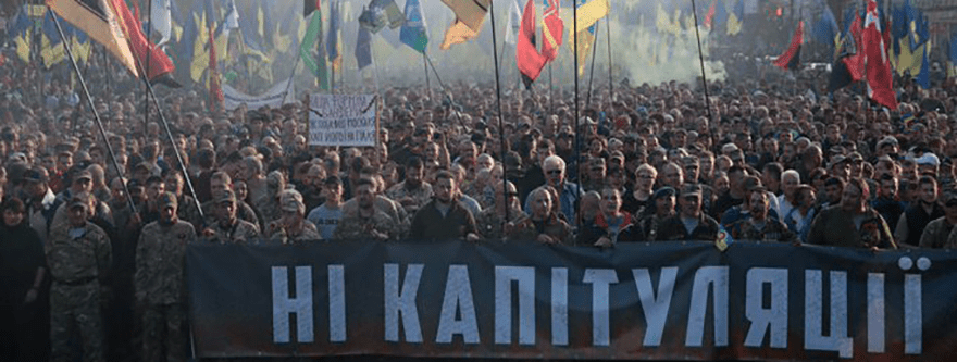 Como cada año desde la victoria de Maidan, Kiev celebró el 14 de octubre, Día del Defensor de Ucrania, coincidiendo con la fecha en la que supuestamente se fundó el Ejército Insurgente Ucraniano (UPA), que a pesar de un historial de colaboración con el nazismo y participación en masacres contra la población polaca del país, Ucrania ha transformado en héroes del nacionalismo. Pero, además de las habituales marchas para honrar a los héroes, en esta ocasión, se añadió un acto “contra la capitulación” que para la extrema derecha supone haber aceptado la “fórmula Steinmeier” para avanzar en el proceso de Minsk. Algo desdibujados desde las victorias electorales de Zelensky, grupos del nacionalismo más radical de Ucrania han aprovechado los pasos dados por el Gobierno según los acuerdos de Minsk para volver a hacer resurgir sus actos y sus amenazas.