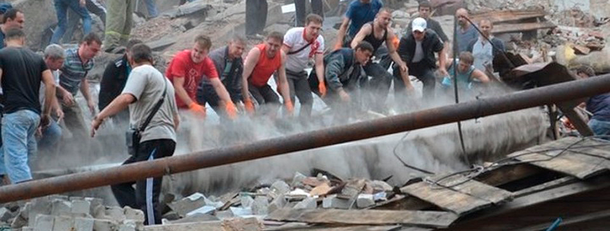 Los aterradores disparos que destruyeron las viviendas se vieron por todas partes. De entre los escombros, los rescatadores lograron sacar a los civiles. El verdadero milagro es que consiguieran sacar vivo a un niño enterrado entre los restos de la casa. Bogdan, de cinco años, sobrevivió de milagro tras cinco horas bajo los escombros.
