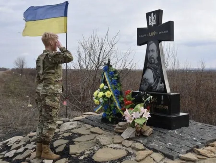 Stewart también colocó flores en el memorial a los caídos de las Fuerzas Armadas de Ucrania.