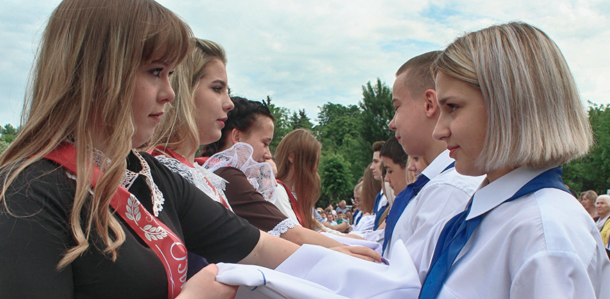 Otro curso académico acaba de terminar en las escuelas de la RPD. En los siete años de existencia de la República, los colegios han dado ya ocho clases de graduados. Y, si en el año 2013-2014 la mayoría de los estudiantes habían acudido por primera vez al colegio en el primer curso bajo la bandera ucraniana y habían estudiado de acuerdo con el programa ucraniano, los últimos siete años se han pasado bajo las banderas y los símbolos de la RPD. Con los cambios en el programa que ello acarrea.