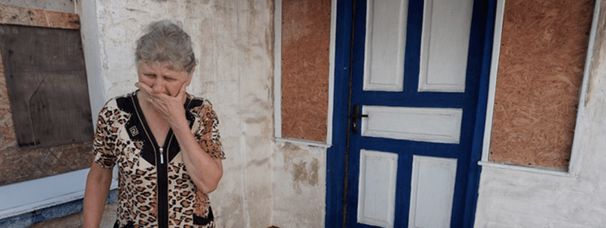 Oxana Demchenko, residente en Trudovsky, sufrió un impacto directo en su casa en 2015. Las ventanas y las puertas volaron junto a sus marcos y el frigorífico salió disparado hasta el pasillo por la onda expansiva.