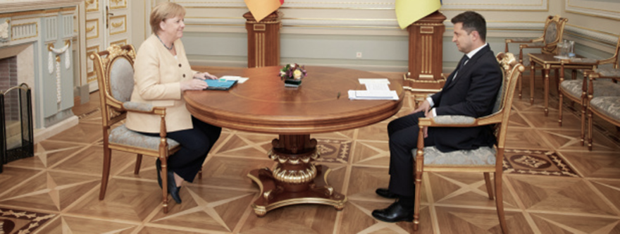 Durante una hora, el presidente ucraniano Volodymyr Zelensky y la canciller alemana Angela Merkel dialogaron sobre la situación en Donbass y el Nord Stream-2. La rueda de prensa conjunta de Zelensky y Merkel tras las negociaciones fue emitido por la Oficina del Presidente de Ucrania.