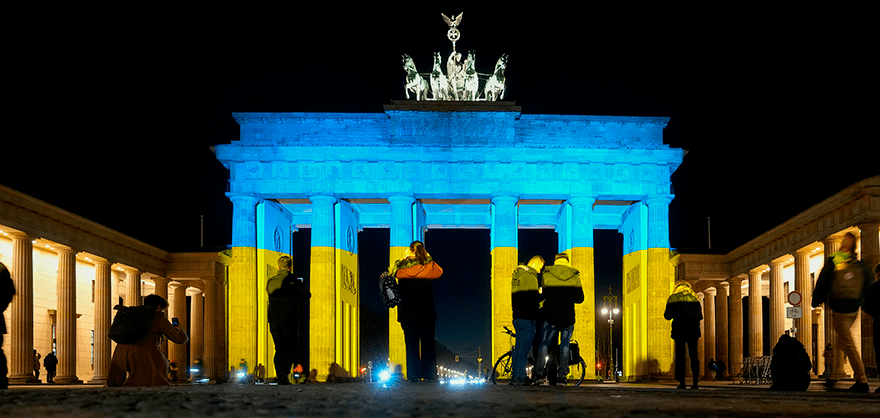 Apoyo a Ucrania en la puerta de Brandenburgo, muestras de solidaridad que la población de Donbass jamás ha recibido en ocho años de agresión ucraniana.