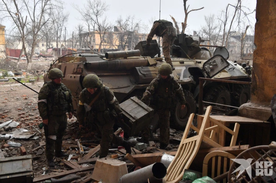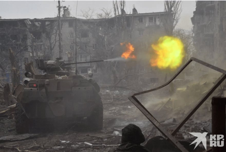 La última fila de edificios residenciales de Mariupol frente a la planta Azovstal me recuerdan al centro de Grozni en enero de 1995. Edificios destruidos, árboles cortados y mutilados por la metalla y los proyectiles, pero con hojas aún sin brotar. Montañas de cemento y ladrillos rotos y coches aplastados contra la basura. La artillería pesada ruge constantemente. Y la fila de cañones de 30mm de los blindados, que trabajan sin ahorrar munición, habría despertado a un muerto.