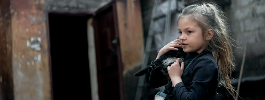 Reconocí a Polina de inmediato. “¿Te acuerdas de mí?”, pregunté. La niña asintió, pero no dijo nada. La última vez que la vi estaba llorando y comiendo barras de cereal que habían sido distribuidas a los niños con la ayuda humanitaria. En aquel momento, la madre de Polina me pidió que trajera velas, cerillas y pilas. Llevé todo lo necesario, pero en el siguiente viaje no pude pasar del punto de distribución. La cola había aumentado a pesar de la lluvia. Así que lo dejamos todo en otra dirección. Pero sabía que la población de Prospekt Mira (Lenin antes de la descomunización) estaba esperando la ayuda que les prometí. “Puedes llamar a tu madre. He traído lo que os prometí”. Polina asintió de nuevo. Salió corriendo por el patio, llamando a todas las puertas en busca de su madre. La mujer no estaba por ninguna parte, pero salieron dos hombres. Uno de ellos estaba cocinando en un hornillo. El otro se acercó para hablar conmigo. También me recordaban, algo que me sorprendió.