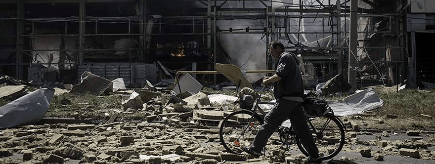 Las Fuerzas Armadas de Ucrania están luchando en las afueras de la ciudad, que está bajo control del Ejército Ruso. Los soldados ucranianos se retiran a causa del desequilibrio de fuerzas entre los dos bandos. El sargento Roman Ilchenko, de 32 años, explica que “los rusos tienen artillería, blindados y sus fuerzas son cinco o seis veces más grandes”. Enfrentándose a esa potencia, los ucranianos amargamente admiten la debilidad de sus fuerzas.