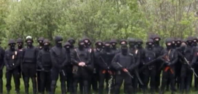En el mensaje de referencia, publicado en YouTube, tres combatientes de Járkov, vestidos con uniformes negros, cubiertos los rostros con pasamontañas y con armas en las manos, lanzaban el siguiente mensaje: «Nosotros, los ucranianos del Este, al ver la inacción de las autoridades y el sabotaje absoluto de las fuerzas del orden sobre el terreno, nos sentimos indefensos frente a los separatistas y ocupantes. Siendo conscientes de ello, asumimos la misión de liberar todo el Sudeste de los ocupantes, ya sea en su forma de saboteadores o de los llamados “hombres de verde” y separatistas traidores”. Es la presentación en sociedad de los hombres de negro de Biletsky en Járkov.