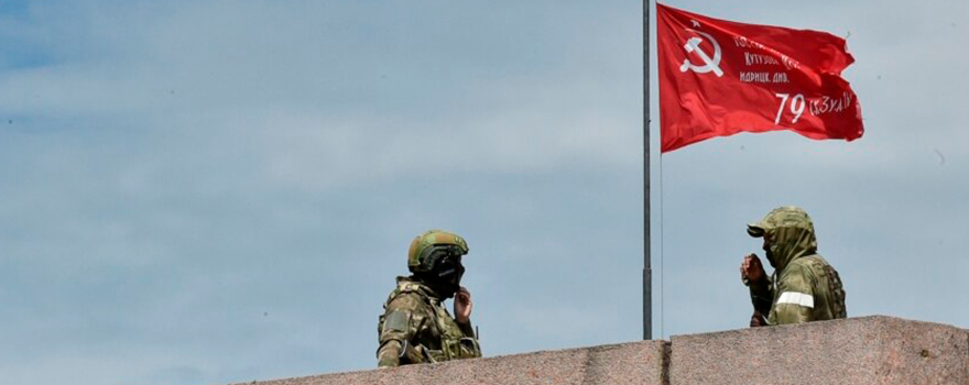 Se han recuperado así argumentos tanto de la etapa imperial como de la etapa soviética. En Jerson, carteles recuerdan la orden de Catalina la Grande de fundación de la ciudad y en Melitopol, a Pavel Sudoplatov, agente del NKVD que asesinó al nacionalista ucraniano Evhen Konovalets y que era natural de la localidad. Y la Bandera de la Victoria -prohibida en Ucrania por la ley anticomunista- ha sido quizá el símbolo más utilizado.