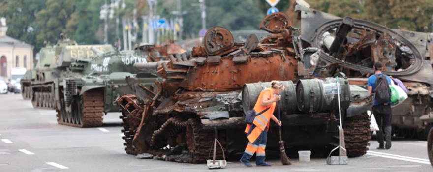 Como admitió el presidente Volodymyr Zelensky, Ucrania ha perdido el control del 20% del territorio con el que nació el 24 de agosto de 1991, una fecha que Kiev ha celebrado cada año de guerra con mayor entusiasmo y que en esta ocasión también va a ser especial, aunque sin grandes actos, prohibidos por las autoridades esta semana. Kiev prepara ya una muestra de equipamiento ruso y republicano destruido y quemado que coloca por sus calles principales a modo de desfile. El significado es evidente: frente al desfile militar que Ucrania supone que Rusia esperaba, el único paseo militar ruso en Kiev será una presumiblemente larga fila de tanques, blindados y camiones quemados. Sin embargo, no fue Rusia quien prometió celebrar un desfile militar en Kiev, sino que ha sido Ucrania quien repetidamente ha prometido realizar un desfile militar en Sebastopol y en Donetsk. Tras ocho años de guerra y seis meses de batallas intensas, tampoco Donetsk y Lugansk tendrían grandes dificultades para realizar un desfile de equipamiento ucraniano quemado que presentar como éxito a sus ciudadanos.
