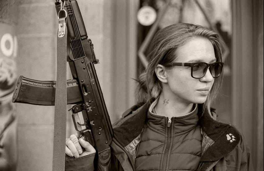 Como ya se ha comentado, la referencia religiosa fundamentalista también caracteriza en estos momentos a Vita Zaveruja, con una nítida trayectoria neonazi previa. El 20 de abril, en las redes sociales de Bratstvo, señala en este sentido: “Me preguntaron por qué estaba en los puestos sin chaleco antibalas y sin casco. No necesito armadura porque llevo una cruz y voy a la iglesia”. Con fines propagandísticos o no, en prácticamente todas las imágenes de la guerra transmitidas por Bratstvo, la “civil” Vita Zaveruja se ve rodeada por soldados uniformados, armados, con casco y chaleco antibalas. Y, como Bratstvo, combina la fe religiosa con la devoción por las armas y la guerra: “En cuanto a las armas, me gustan varios lanzagranadas, especialmente el RPG-7, es un clásico”, señala. “La guerra es mi estilo de vida”.