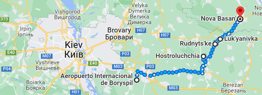 El final de la contraofensiva de Bratstvo y de las demás fuerzas ucranianas al este de la región de Kiev es Nova Basan, ya en el Oblast de Chernigov.