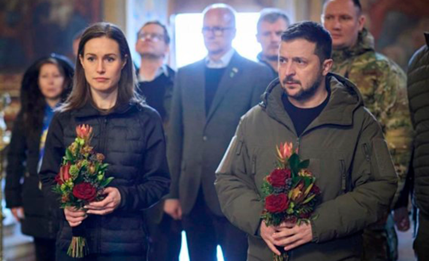 También estuvo presente en la ceremonia del comandante del Praviy Sektor la primera ministra de Finlandia, la socialdemócrata Sanna Marin. A diferencia de los demás asistentes, es poco probable que conociera la figura, la ideología y la historia político-militar de Dmytro Kotsyubailo.