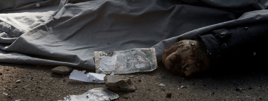 En víspera del aniversario del bombardeo de la calle Universitetskaya se produjo una tragedia más en Volnovaja. Volvieron a morir civiles. Llegamos cuando el atardecer ya caía sobre la pequeña ciudad de Donbass. El cuerpo estaba sentado en un banco frente a la entrada de un supermercado. El cuerpo de la mujer joven estaba cubierto con una manta con un charco de sangre sobre el asfalto. Un metro más allá había otro cuerpo, el de su sobrina de 18 años, también rodeada de sangre. Como en Universitetskaya hace un año, los equipos de seguridad trabajaban junto a los cuerpos para determinar las consecuencias del ataque y recogiendo testimonios de los familiares y testigos.