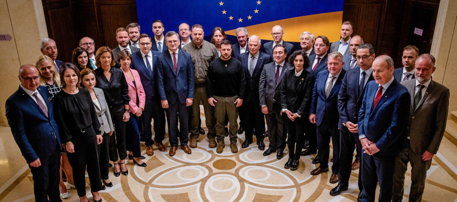 Kiev celebró ayer, a iniciativa del líder de la diplomacia de la Unión Europea, Josep Borrell, una cumbre que los medios calificaron de histórica y sin precedentes. Todos los ministros de Asuntos Exteriores de la Unión Europea se reunieron en la capital ucraniana, no para tratar temas que requirieran de una cumbre cara a cara, sino para escenificar el completo e incondicional apoyo que Ucrania dispone desde el 24 de febrero de 2022, pero que había comenzado ya en 2014. La cumbre, más mediática que política, se produce en un momento en el que los aliados de Ucrania han querido mostrar no solo unidad, sino compromiso a largo plazo para compensar las crecientes dudas tanto militares como políticas. Volodymyr Zelensky parecía esperar lograr con su presencia en el Congreso de Estados Unidos la aprobación Republicana al aumento del presupuesto disponible para Ucrania, otros 24.000 millones de dólares añadidos a las cuantías ya comprometidas, que había exigido Joe Biden. Sin embargo, el acuerdo para evitar el cierre del Gobierno -un pacto temporal de tan solo 45 días, tiempo en el que habrá de negociarse una solución más definitiva- no incluye financiación para Kiev, lo que ha causado una preocupación profundamente exagerada, pero que ha dado pie a la UE a saltar a la palestra para presentarse como la principal valedora del país.