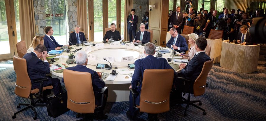 Intensa por las circunstancias internacionales en las que se ha producido, pero insulsa por la total ausencia de avances relevantes, la cumbre del G7 ha dado paso a la preparación del encuentro anual de la OTAN que se celebra en La Haya la próxima semana y que se prevé mucho más disputado. Al fin y al cabo, el G7 está actualmente compuesto por un bloque en el que impera un único pensamiento y del que solo se desmarca Donald Trump. Quizá para lidiar con la situación en Oriente Medio o solo por desinterés en una reunión en la que no tenía nada que ganar, el presidente de Estados Unidos abandonó precipitadamente Canadá para regresar a Washington a continuar con las amenazas contra Irán, reunirse con futbolistas en la Casa Blanca y tratar la cuestión de la guerra contra Irán como un guionista prepara un cliffhanger para acabar cada capítulo y obligar a la audiencia a no perderse el siguiente. Después del frívolo comentario en el que afirmaba que “nadie sabe lo que voy a hacer”, Donald Trump anunció el jueves que, ante la posibilidad de que se produjera algún tipo de diplomacia -con una pistola en la cabeza, ya que, en mayúsculas y públicamente ha exigido la rendición incondicional de Irán-, se da un tiempo para decidir si Estados Unidos intervendrá en la fase ofensiva de esta guerra contra la República Islámica de Irán. Washington, al igual que Londres, participa ya en la defensa del país agresor, Israel, que sigue exigiendo que, ante una peligro inminente imaginario, Estados Unidos intervenga de su lado.