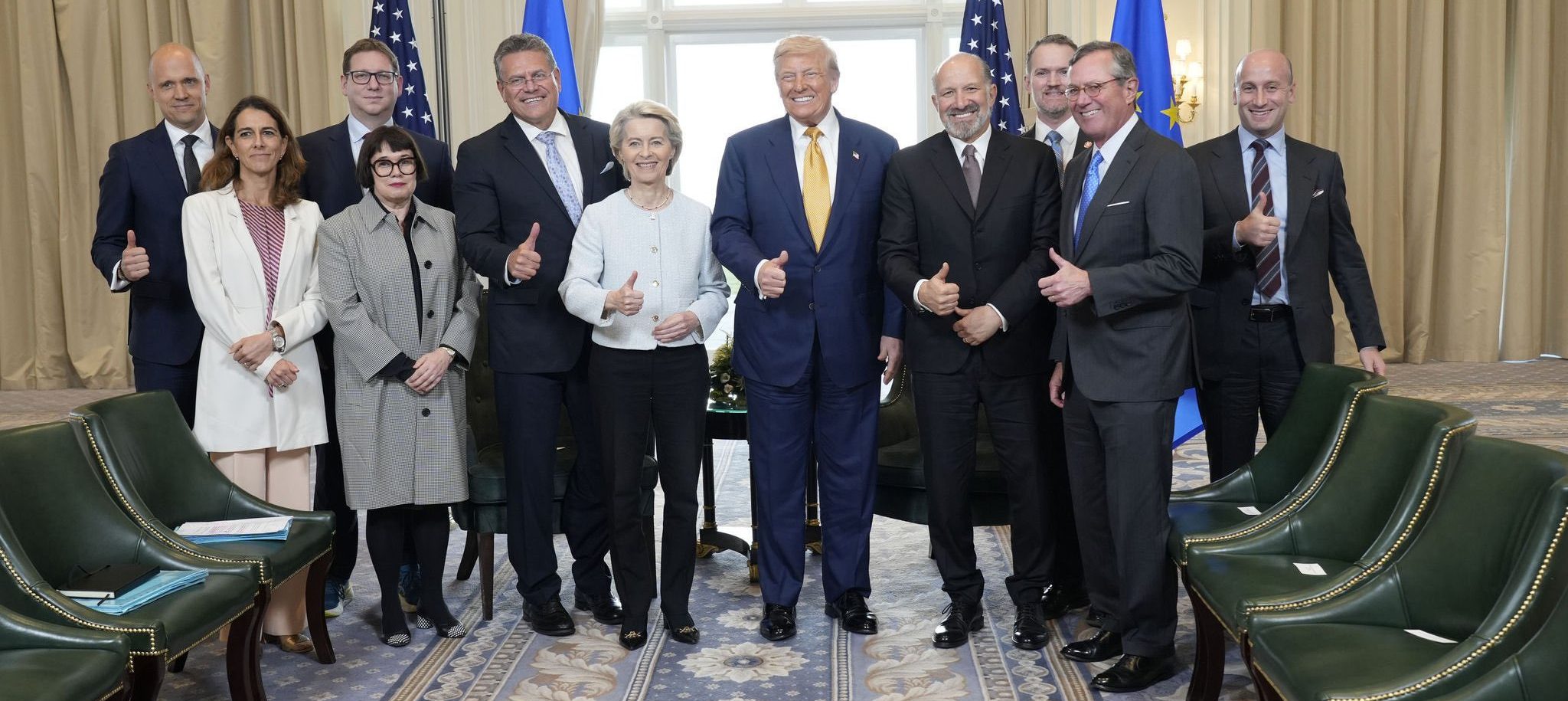 El acuerdo alcanzado el domingo por la noche en una negociación como a Trump le gusta, en posición de fuerza y jugando en casa -en el campo de golf de Escocia del que es propietario-, es otra demostración del poder de Estados Unidos ante su nuevo patio trasero, dispuesto a ceder en todas y cada una de las exigencias y aun así ser capaz de presentar el resultado como “el mayor acuerdo que se ha realizado nunca”. Sin obtener nada a cambio, ya que los aranceles a los productos estadounidenses se quedan en cero, la UE ha posado sonriente y con los pulgares arriba en su anuncio de un acuerdo según el cual los productos europeos -con contadas excepciones- tendrán un 15% de aranceles en el mercado estadounidense (frente al 10% al que aspiraba Bruselas, aunque lejos también del 30% de la amenaza vacía de Donald Trump, que siempre supo que habría acuerdo). Además de esa concesión, Bruselas acepta también el chantaje estadounidense en el sector de la energía y el de la industria militar: la UE se compromete a unas adquisiciones militares 600.000 millones de dólares por encima del nivel habitual y energéticas por valor de 750.000 millones de dólares en tres años.