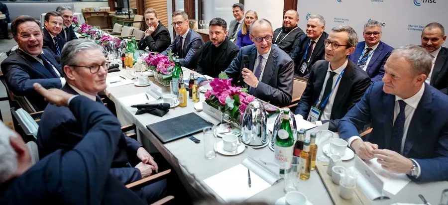 Han pasado apenas unos días desde el final del Foro de Davos, una edición celebrada en plena disputa occidental por la cuestión de Groenlandia, que hizo de la cumbre una forma de terapia colectiva para determinar qué hacer, ya sea para salvar el orden internacional basado en reglas, el orden de 1945 que “ha dado ocho décadas de paz” a los países occidentales –que no han dudado en infligir la guerra y la agresión sobre otros países- o para buscar la mejor manera de sustituirlo. Las declaraciones que han realizado los y las diferentes oficiales occidentales los días anteriores al inicio ayer de la Conferencia de Seguridad de Múnich indican que el proceso continúa y que la agenda seguirá esa misma lógica. El caso más claro es, sin duda, el de Macron, que en una extensa conversación mantenida con varios de los medios escritos más importantes del continente, explicó que Europa –es decir, la Unión Europea, Reino Unido y Noruega- ve cómo se ponen en duda tres aspectos que consideraba certezas. Según el presidente francés, la construcción europea se ha sustentado sobre la base de que Estados Unidos se encargaría de la seguridad, Rusia suministraría energía barata y China sería un mercado interminable para la exportación. En este momento en el que las tres certezas han desaparecido, los países europeos buscan su camino para convertirse en una potencia geopolítica para la nueva era. Esta semana, Francia por un lado y Alemania e Italia por otro, han presentado sus propuestas, una lucha entre un modelo de endeudamiento e inversión común basado en la “protección, no proteccionismo” propuesto por Macron y la desregulación y atlantismo de Merz y Meloni. El debate se encuentra aún en su fase inicial y aunque promete una lucha política entre dos posiciones encontradas, hay una certeza: todos los bandos, a excepción de las habituales excepciones, consideran la guerra de Ucrania como el proyecto geopolítico con el que la Unión Europea debe mostrar su carta de presentación. En plena negociación en busca de una resolución política al conflicto, la guerra de Ucrania será, junto a la relación con Estados Unidos, uno de los temas protagonistas de la cumbre de Múnich.